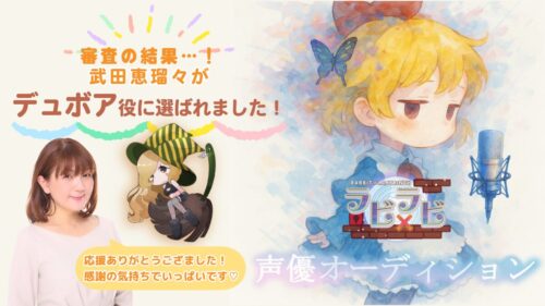 昨年末、シルバースタージャパン様の人気アクションパズルゲームの【ラビ×ラビ】の声優オーディションが開催され、今回は一般公募でしたのでえるるんもオーディションにチャレンジしておりました!審査の結果、私、武田恵瑠々はなんとデ […]